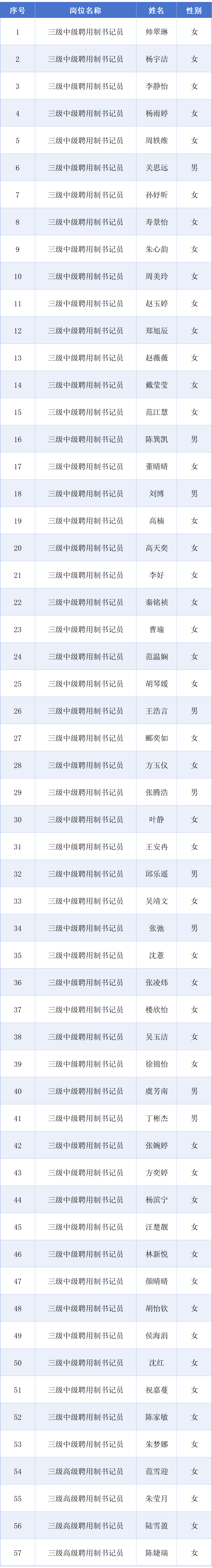 根据《杭州市临平区人民检察院中、高级聘用制书记员招聘公告》规定,现将杭州市临平区人民检察院中、高级聘用制书记员招聘通过资格审查人员名单公布如下: